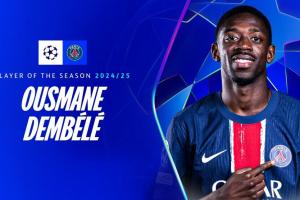 15场8球6助随队夺冠!官方:登贝莱当选24/25赛季欧冠最佳球员!